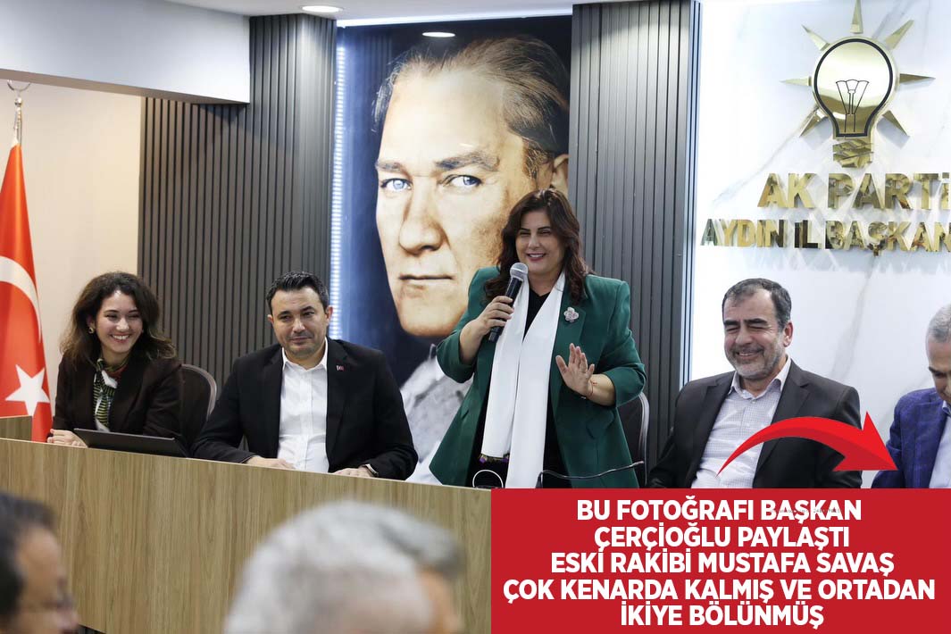 Parti toplantısında adeta “ipleri eline aldığı” izlenimi veren Çerçioğlu’nun fotoğrafında, Savaş’ın kadraj dışında kalması siyasi kulislerde metaforlarla anlatıldı. Çerçioğlu’nun seçimlerde üç kez mağlup ettiği Savaş’ın görselde ortadan “dilimlenmiş” gibi görünmesi, Aydın siyasetinde ince mesaj olarak değerlendirildi.