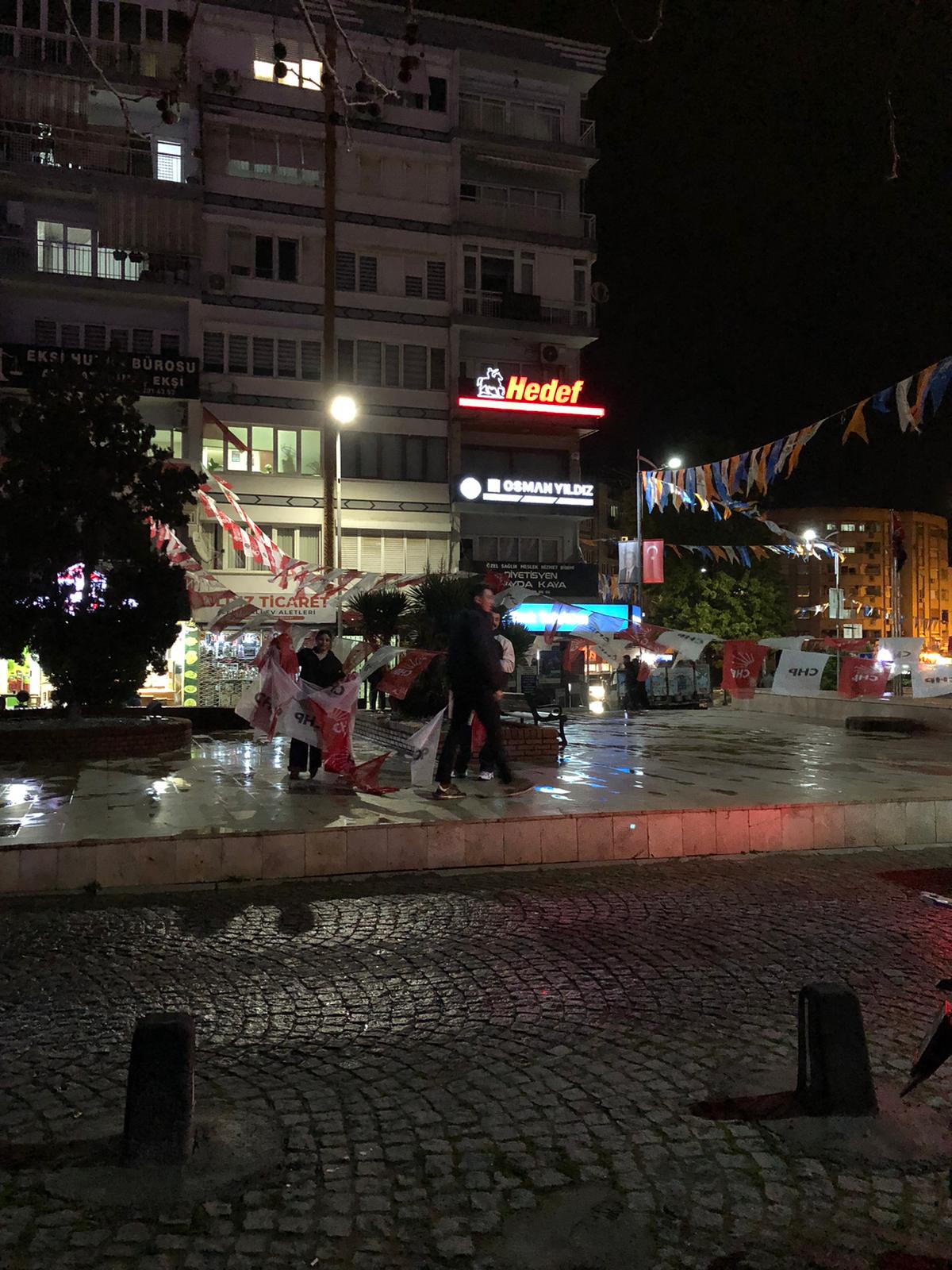 AK Parti’nin Aydın’da düzenlediği mitingin ardından kent genelinde asılı kalan bayraklar, CHP Aydın İl Başkanı Hikmet Saatçı tarafından eleştirilmiş, Saatçı kamuoyuna “eşit uygulama” çağrısında bulunmuştu.