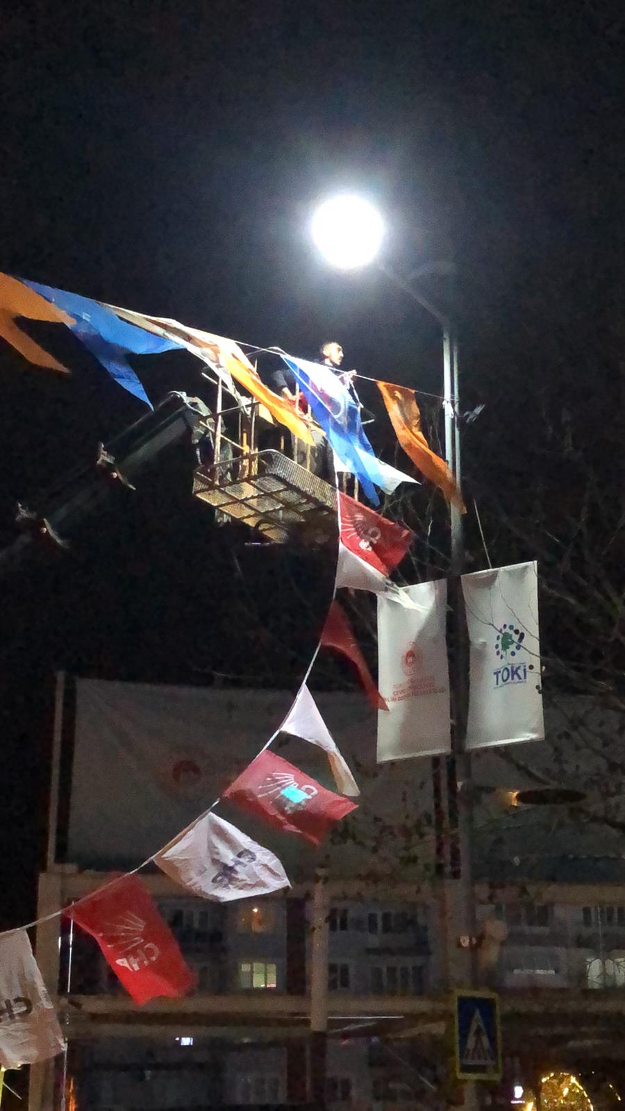AK Parti mitingi sonrası bayrakların kaldırılmadığı iddiasıyla başladı.