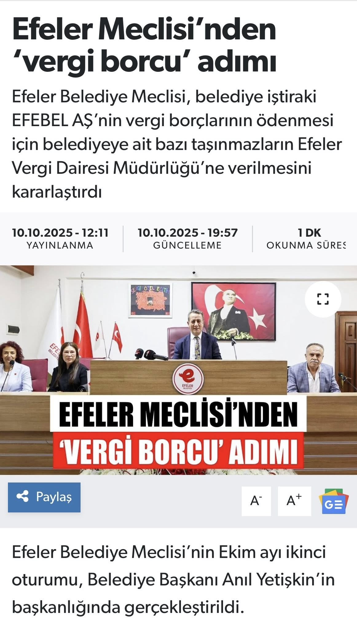 “Demek ki mesele cami değilmiş. Geçtiğimiz aylarda belediyemiz hakkında ‘camileri satıyorlar’ manşetleri atanları ve ardından yapılan kınama açıklamalarını unutmadık. Bugün görüyoruz ki CHP’li Efeler Belediyesi de aynı yöntemi uygulayarak borçlarını ödeyebilmek için benzer bir karar almış.”