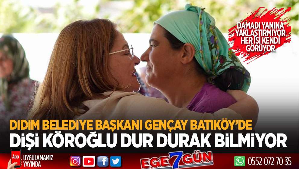 Ekrem İmamoğlu destekli, dağları delerek heryere hizmet götüren Dişi Köroğlu lakaplı Didim Belediye Başkanı Hatice Totik Gençay, Didim Belediyesi tarafından Batıköy Mahallesi’nde sürdürülen çalışmaları yerinde inceledi. Öte yandan Başkan Gençay'ın her işe burnunu sokan, Didim'de ortalığı karıştıran damadı Cem Armutlu'yu artık yanına yaklaştırmıyor ve her işe kendi karar veriyor.