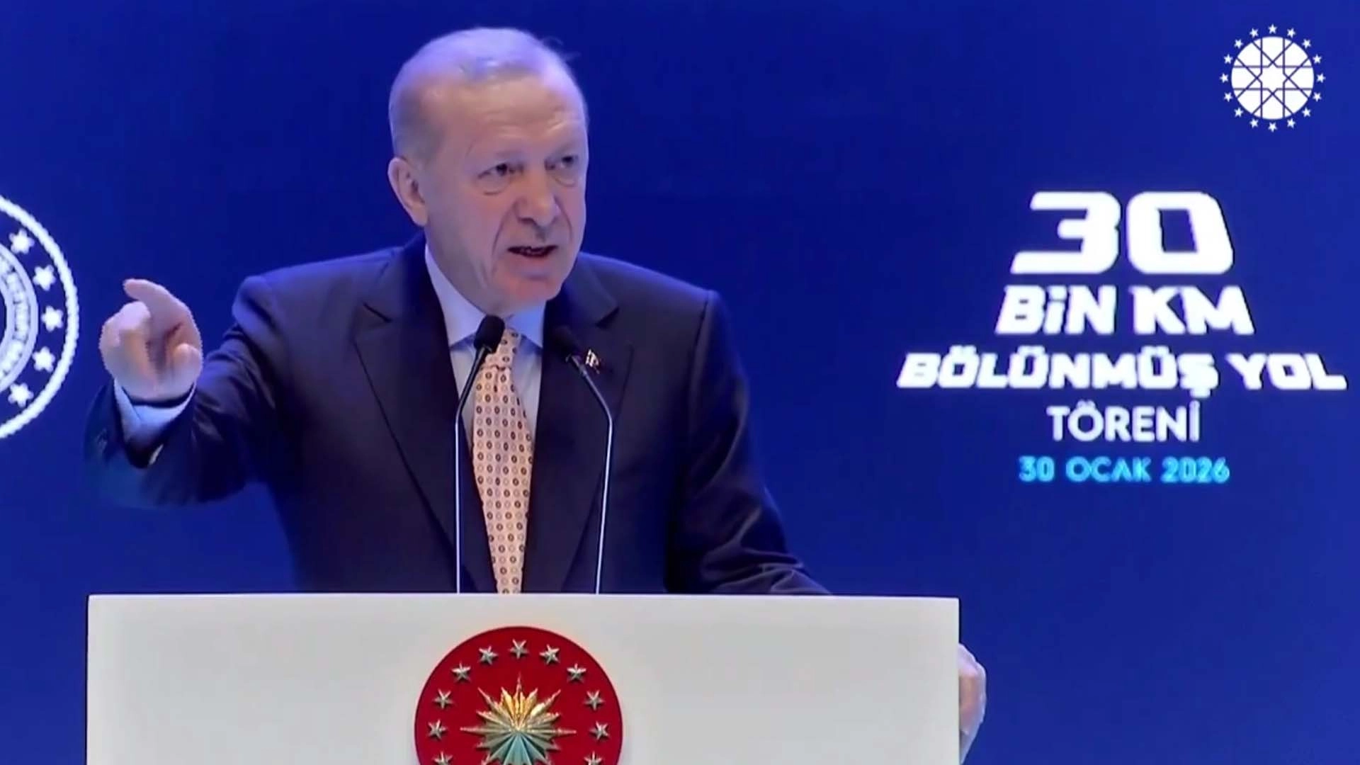 İSTANBUL (İGFA) - Cumhurbaşkanı Recep Tayyip Erdoğan, Karayolları Genel Müdürlüğü’nün 30 bininci kilometre bölünmüş yolunun hizmete alınması dolayısıyla Haliç Kongre Merkezi’nde düzenlenen törende önemli açıklamalarda bulundu.