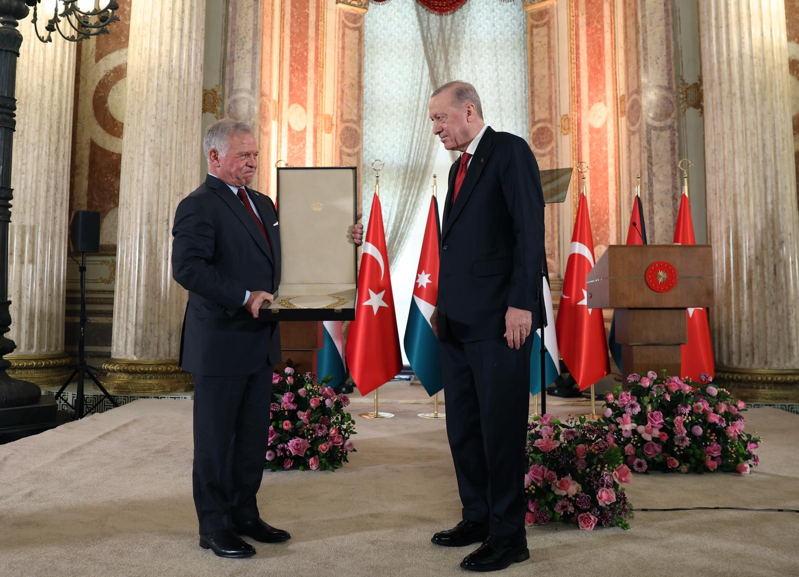 Cumhurbaşkanı Recep Tayyip Erdoğan, Türkiye’ye ziyarette bulunan Ürdün Kralı II. Abdullah’ı Cumhurbaşkanlığı Dolmabahçe Ofisi’nde resmî törenle karşıladı. Görüşmede iki ülke ilişkileri ele alındı.
