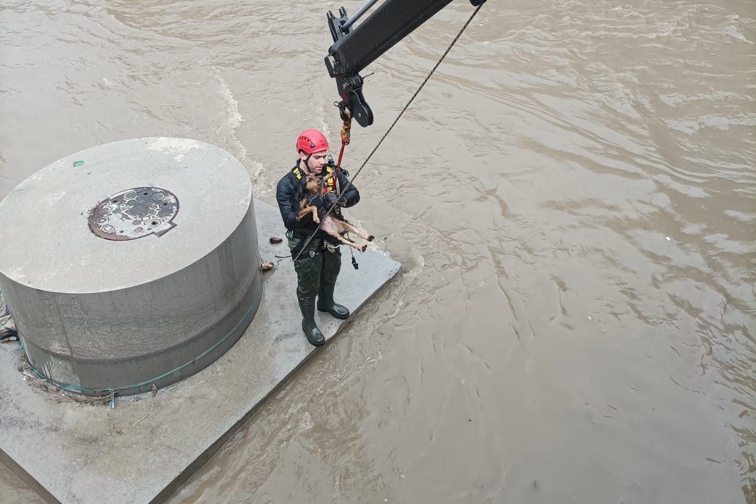 Karabağlar Aşık Veysel Mahallesi’nde dereye düşerek mahsur kalan bir köpek itfaiye ekiplerinin hızlı müdahalesiyle dakikalar içinde kurtarıldı.