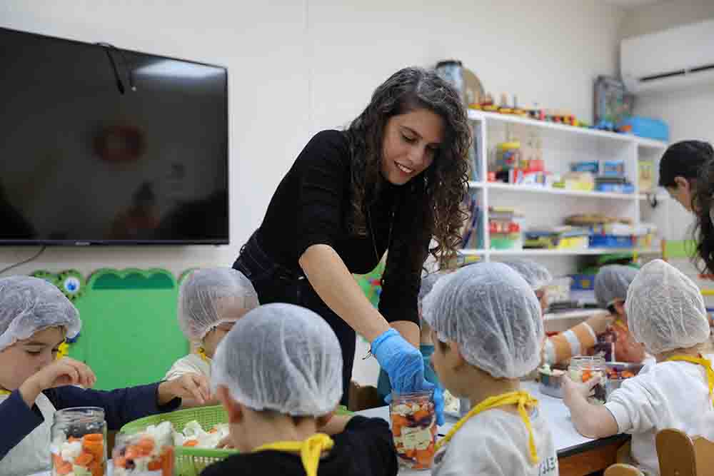 Çocuklar etkinlik boyunca sebzeleri tanıdı, malzemeleri ayırt etmeyi öğrendi ve kavanozları özenle doldurarak sürecin her aşamasına aktif olarak katıldı. Yaparak öğrenme yönteminin uygulandığı etkinlikte minikler hem eğlendi hem de el becerilerini geliştirme fırsatı buldu.