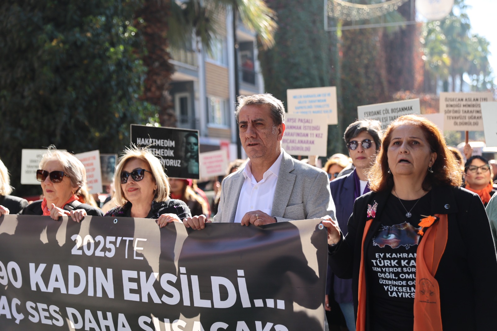 Menderes Parkı’ndan başlayan yürüyüşte slogan atılmadı, dövizler sessizce taşındı. Efeler Belediye Başkanı Anıl Yetişkin de yürüyüşe katılarak desteğini gösterdi.
