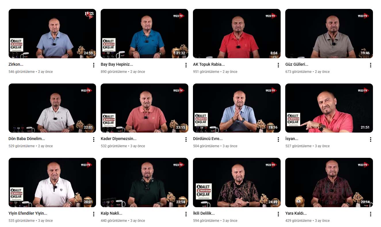 İbrahim Gürdal'ın 1923TV isimli YouTube Kanalında bulunan programlardan sadece birkaç örnek, tamamını kanalda görebilirsiniz, bir giydiğini bir daha giydiğini biz görmedik, gören olursa haberin altına yorum olarak yazabilir!..