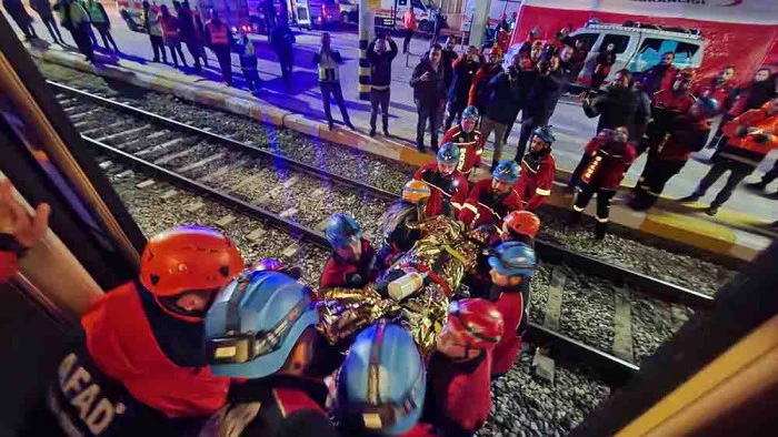 İzmir’de 6.7 büyüklüğünde deprem ve İZBAN treninin Menemen İstasyonu’nda deray olması senaryosuyla düzenlenen tatbikat, 11 kurumun koordinasyonunda başarıyla tamamlandı.