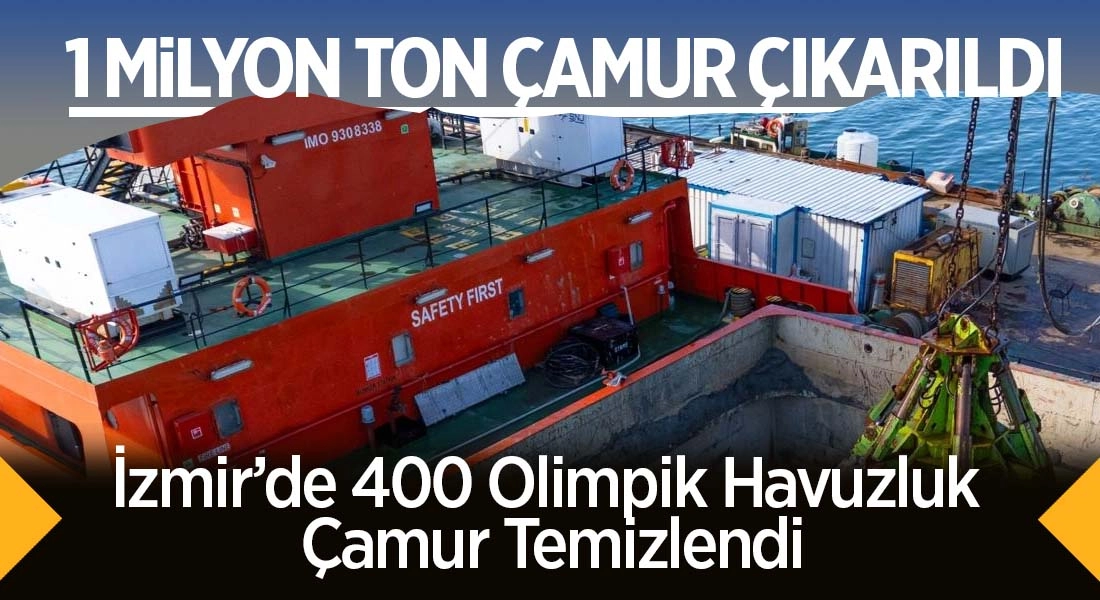 İzmir Büyükşehir Belediyesi, Körfez’de Aralık 2024’ten bu yana 1 milyon ton dip çamuru çıkardı. Hedef 4 milyon tonluk temizlikle su sirkülasyonunu artırmak ve ekosistemi güçlendirmek.