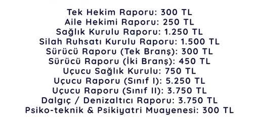 Yeni düzenlemeye göre; ehliyet, yivsiz tüfek, işe giriş, sporcu lisans, genel durum bildirir, akli meleke ve hac parmak izi raporu almak isteyen vatandaşların, Sağlık Bakanlığı’na ödeme yapması gerekiyor.